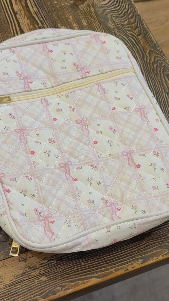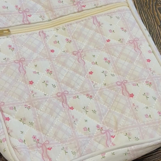 Each cover can be personalized with a monogram, name, or initials, making it a thoughtful gift for yourself or a loved one. The soft cotton quilting offers both charm and durability, while the secure zipper closure keeps everything neatly in place.